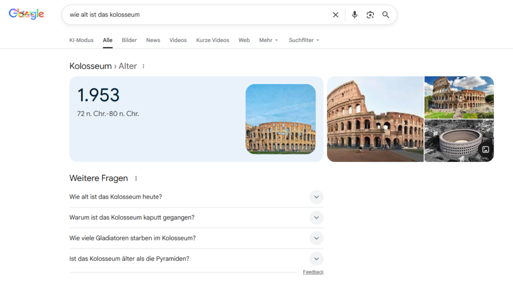 Diese Suchanfragen unterscheidet man auch unter Know-Keywords oder Know-Simple-Keywords. Know-Keywords sind meistens längere Fragen auf die es mehrere, ausführlichere Antworten gibt. Hier werden dem User unterschiedliche Seiten auf deren es verschiedene Antwortmöglichkeiten gibt vorgeschlagen. Zum Beispiel „Wie verwende ich Keywords richtig im Online Marketing“. Know-Simple-Keywords sind einfache Fragen auf die es in den meisten Fällen nur eine richtige Antwort gibt, zum Beispiel „Wie alt ist das Kolosseum “. Die Antwort wird in den SERP`s optisch hervorgehoben und an erster Stelle der Suchergebnisse angezeigt.