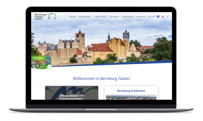 Die Bernburger Freizeit GmbH ist die städtische Tourismusabteilung der Stadt Bernburg. Sie ist verantwortlich für viele Freizeit- und Kulturangebote, Veranstaltungen und Sportstätten. Neben der Gestaltung und Pflege der Webseite unterstützen wir die BFG regelmäßig mit gezielten Werbekampagnen und Beratungsleistungen.