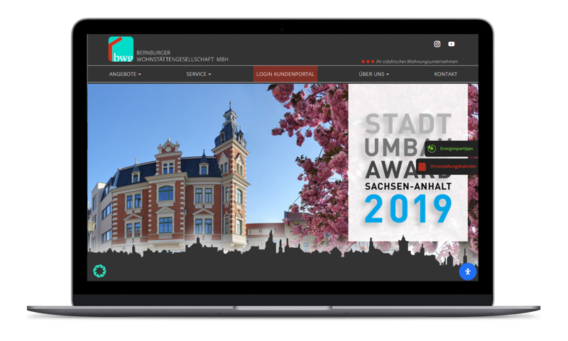 Für die Bernburger Wohnstättengesellschaft haben wir eine neue Webseite inklusive eines interaktiven Tools von Immobilienangeboten entwickelt. Zusätzlich haben wir Inhalte optimiert, um die Nutzerfreundlichkeit der Seite zu verbessern.