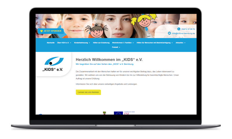 Für Kids e.V. Bernburg wurde eine neue Webseite konzipiert und umgesetzt. Auf Basis vorhandener IT Strukturen, wurden neue interaktive Tools entwickelt und für interne Arbeitsprozesse optimiert.