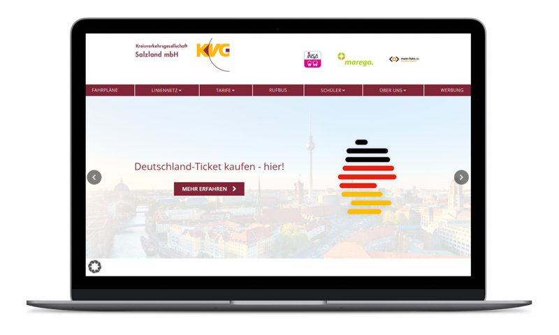 Für die Kreisverkehrsgesellschaft Salzland mbH wurde ein neues Konzept für eine Webseite entwickelt und im Anschluss umgesetzt. Das bestehende CI wurde integriert und die Seitenstruktur neu gestaltet.