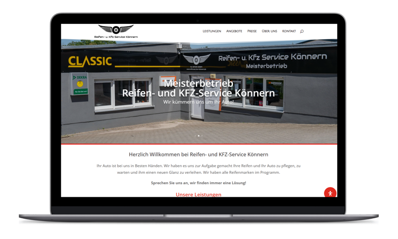 Für den KFZ & Reifenservice in Könnern wurde ein Onepager erstellt, der nach und nach an das wachsende Leistungsportfolio des Unternehmens angepasst wurde.