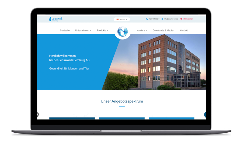 Die Serumwerk Bernburg AG kann auf eine 60 Jahre lange Tradition zurückschauen. Das mittelständische Pharmaunternehmen entwickelt und produziert Arzneimittel, Medizinprodukte und Wirkstoffe. Neben verschiedenen Webseiten entwickeln wir für das Unternehmen gezielte Vermarktungskampagnen und beraten das Team im Bereich Webdesign, Social Media und Google Ads.
