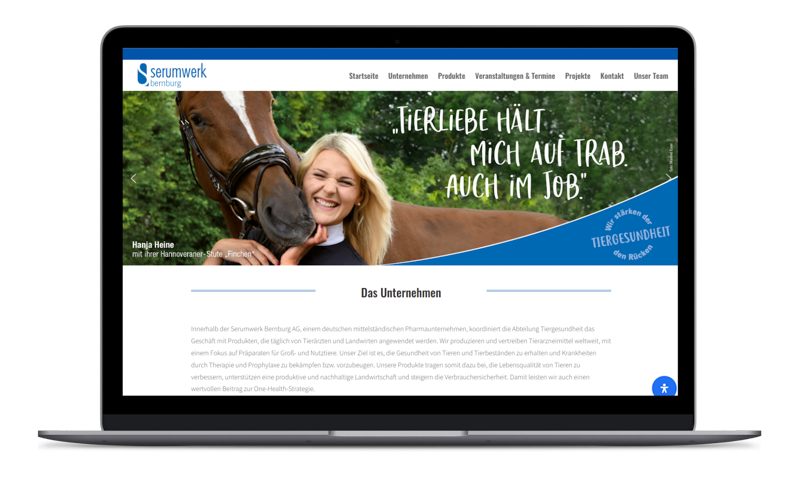 Für die Abteilung der Tiergesundheit der Serumwerk Bernburg AG wurde eine moderne Webseite erstellt. Zusätzlich unterstützen wir die Veterinärmedizinabteilung im Bereich Tiergesundheit. Pferde, Bienen, Nutztiere und Kleintiere mit verschiedenen Kampagnen und Content Leistungen.